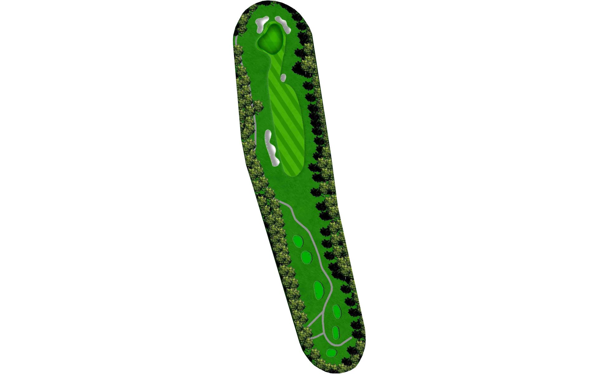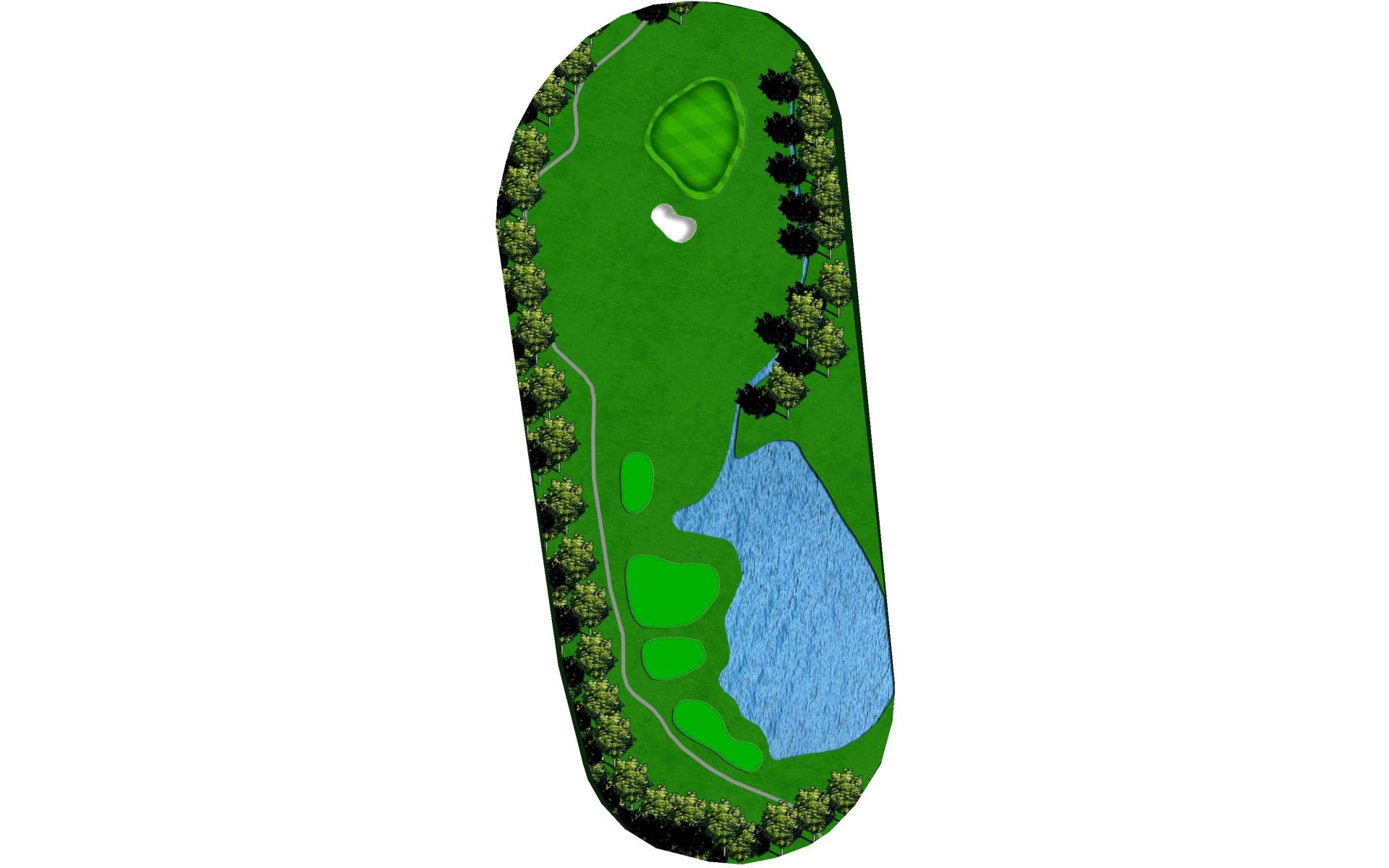 This short par 3 plays slightly uphill to a narrow green. Play towards the middle of the green to avoid the hazard guarding the right side.