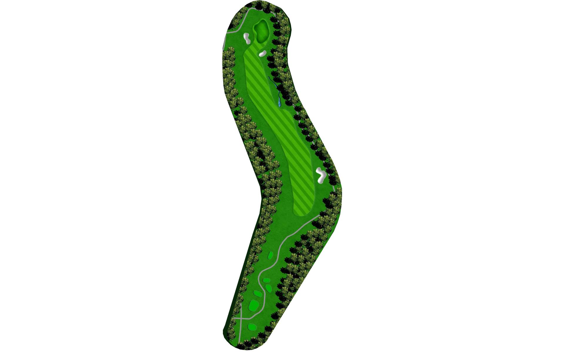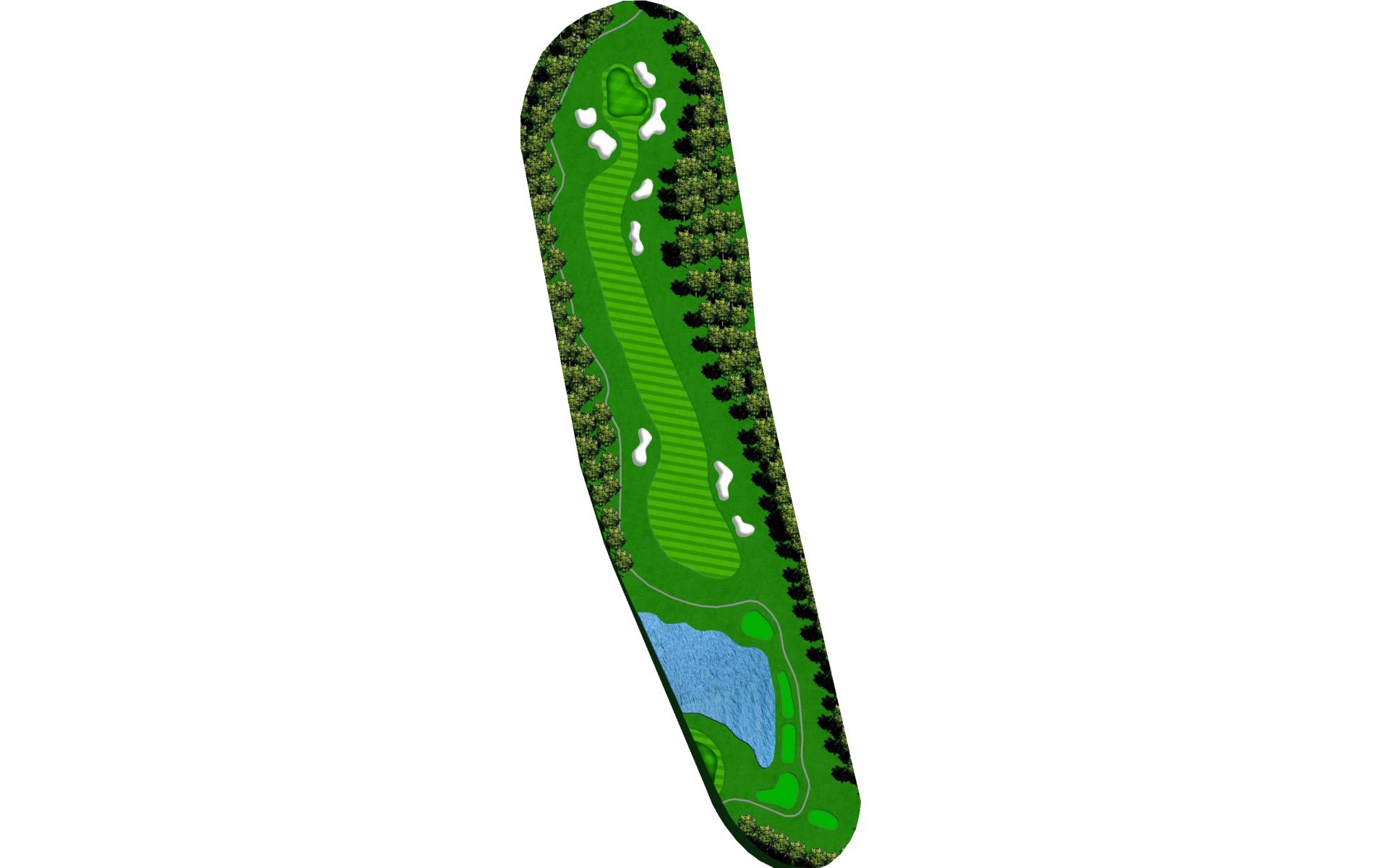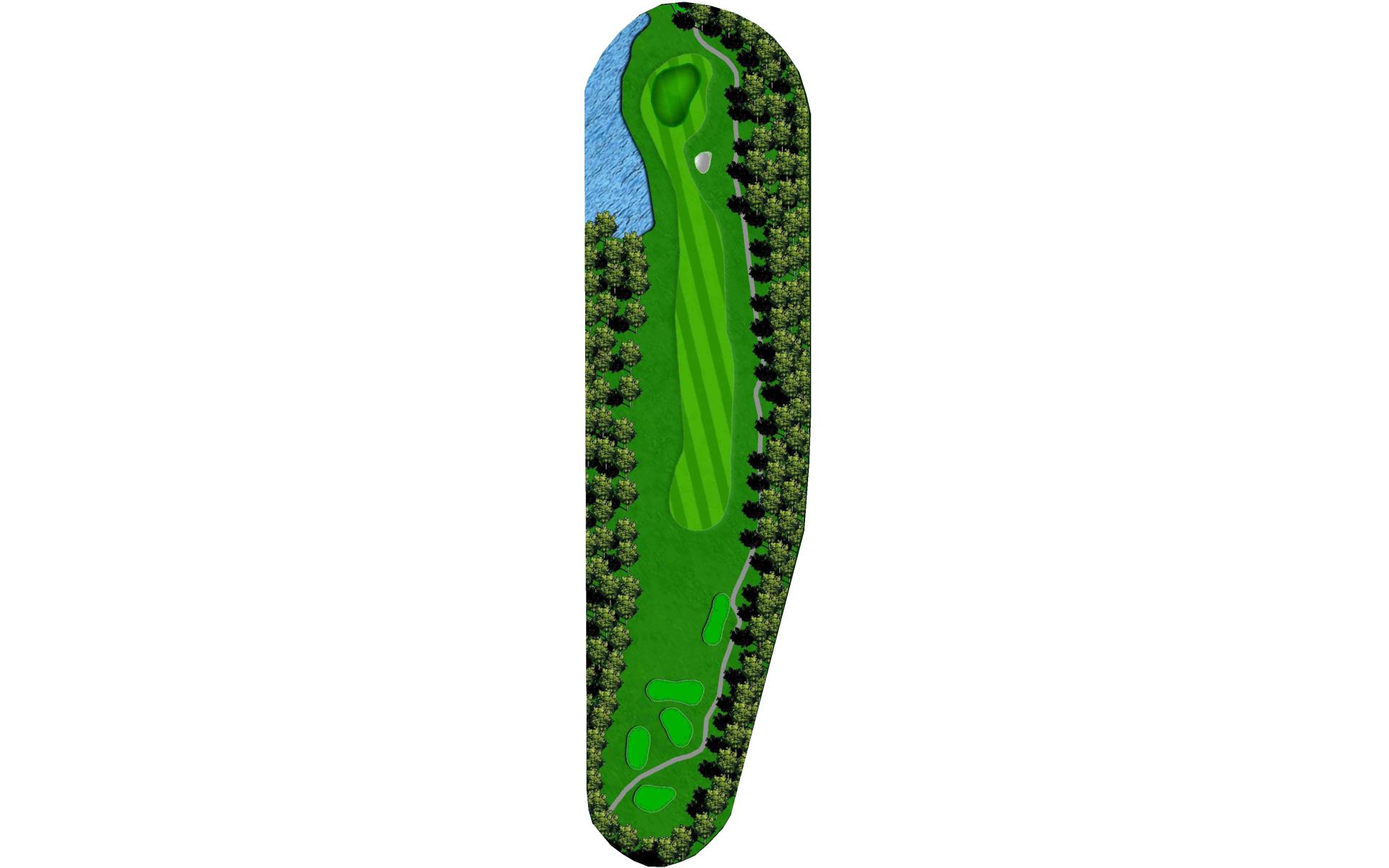 A relatively short par 4 with trees lining the right and water hazard on the left. A good tee shot will leave you a short-iron approach to one of the flattest greens on the course.