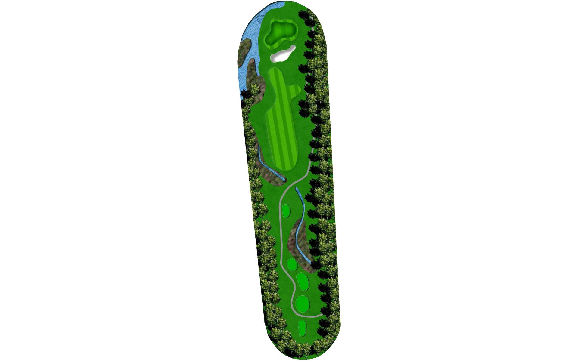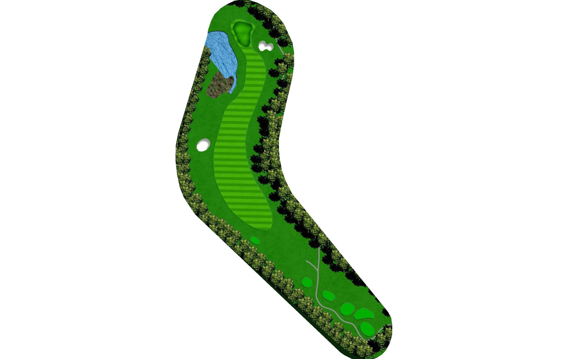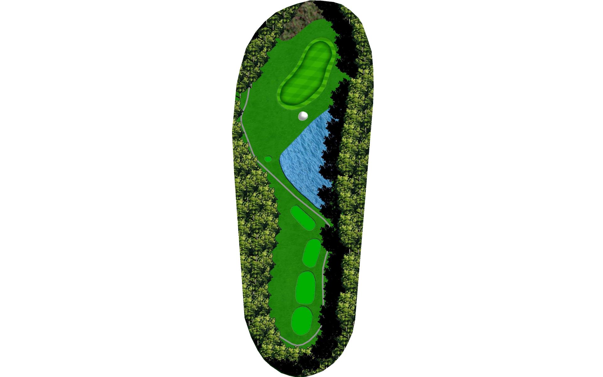 A relatively short par 4 with trees lining the right and water hazard on the left. A good tee shot will leave you a short-iron approach to one of the flattest greens on the course.