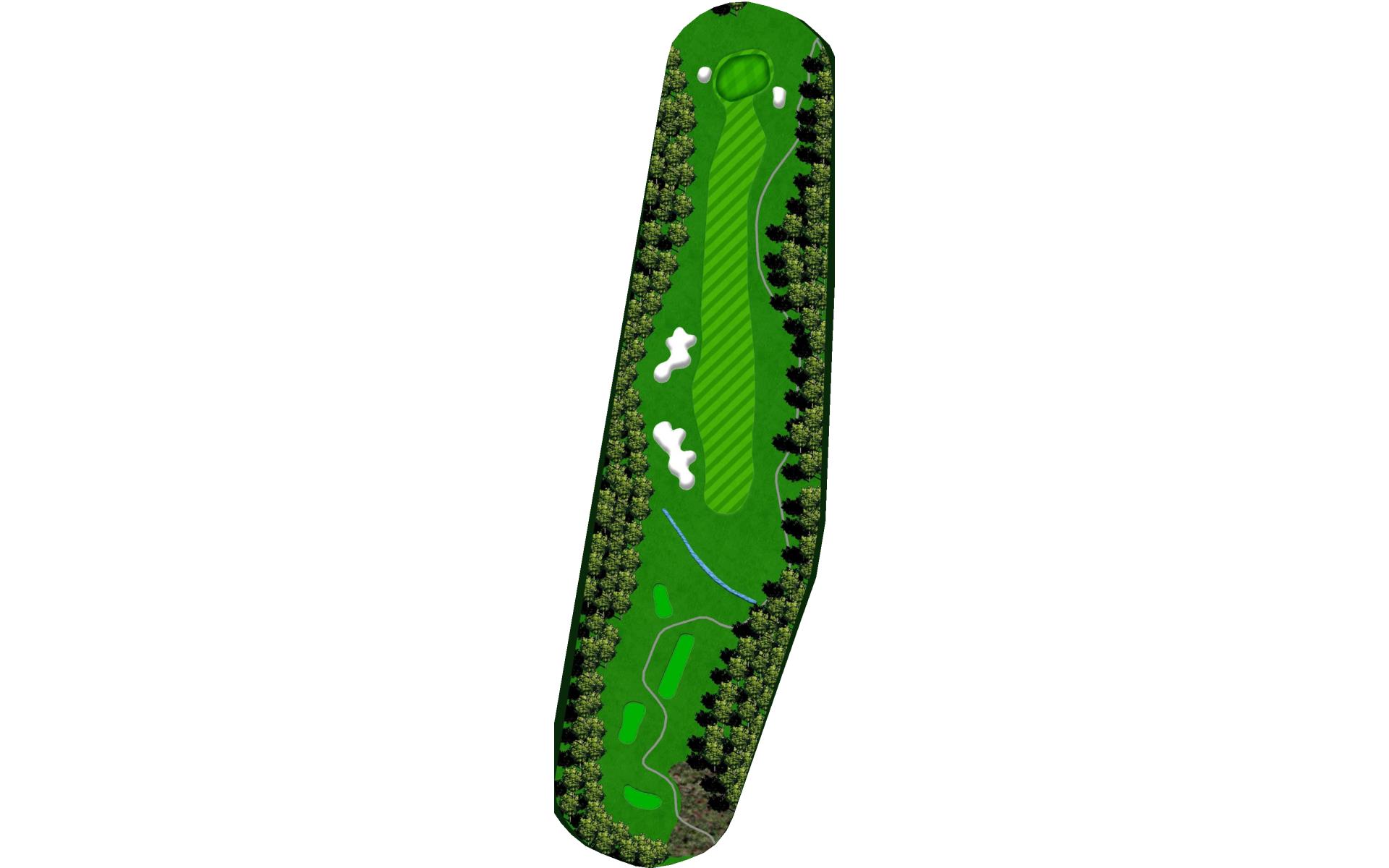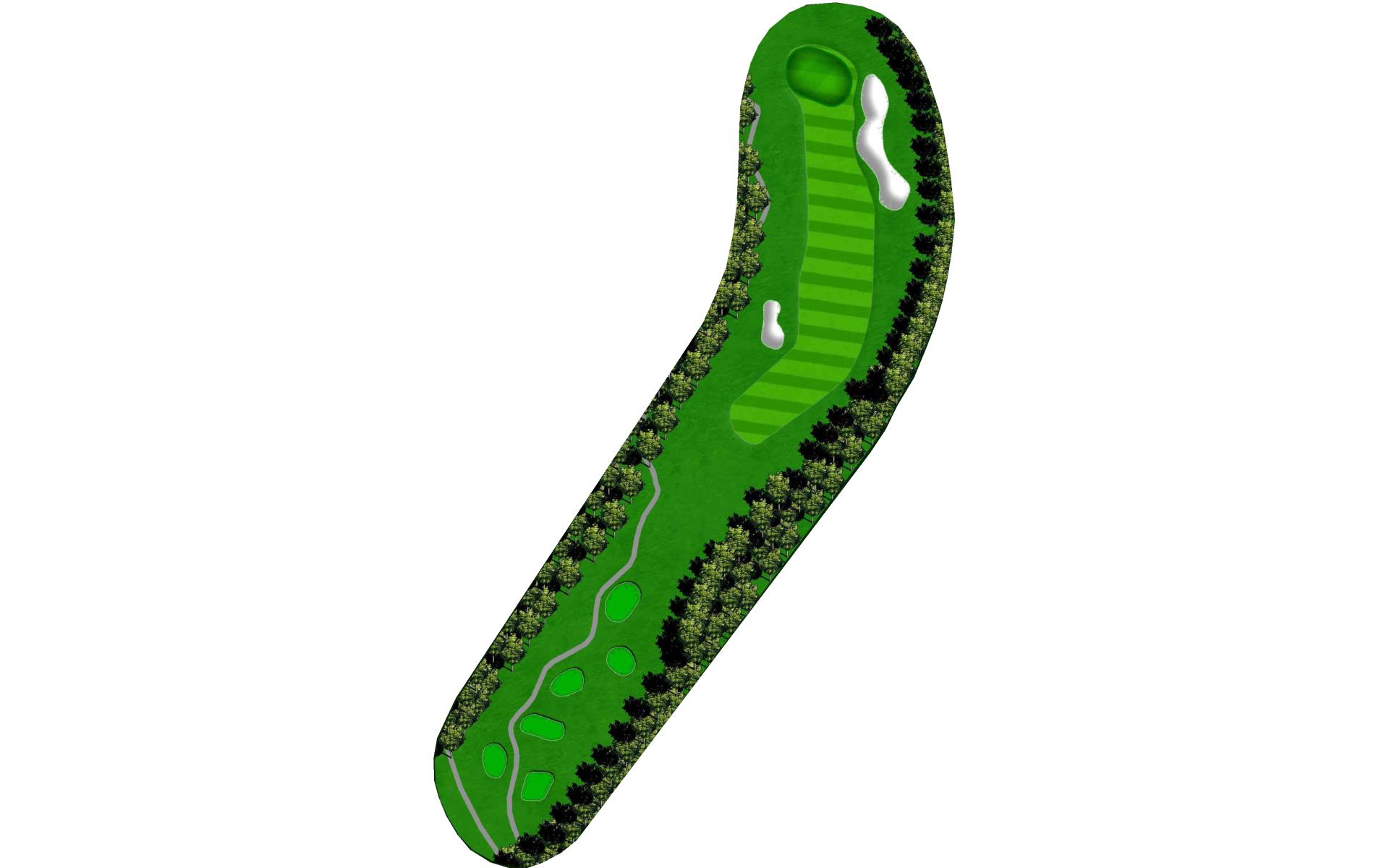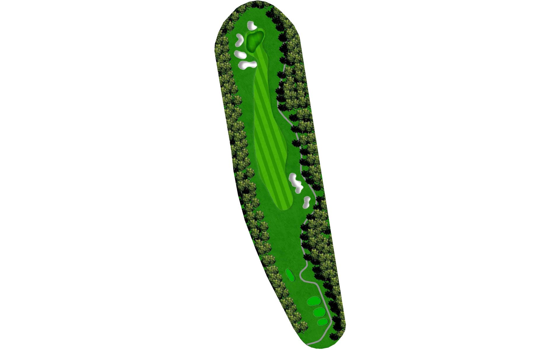 Driver isn’t needed for most players on this hole. A decent tee shot in the fairway will leave you a short-iron approach to a shallow green.