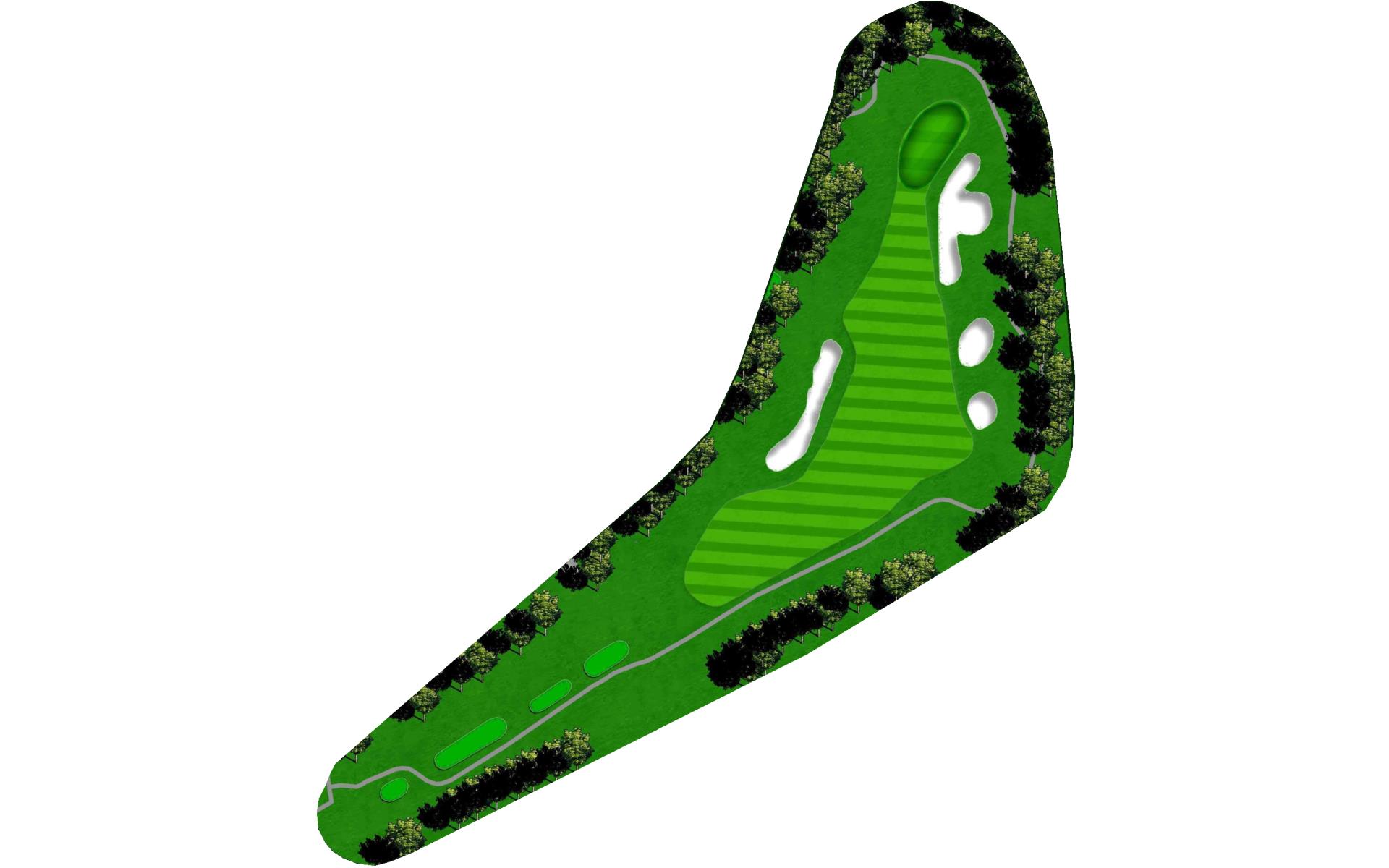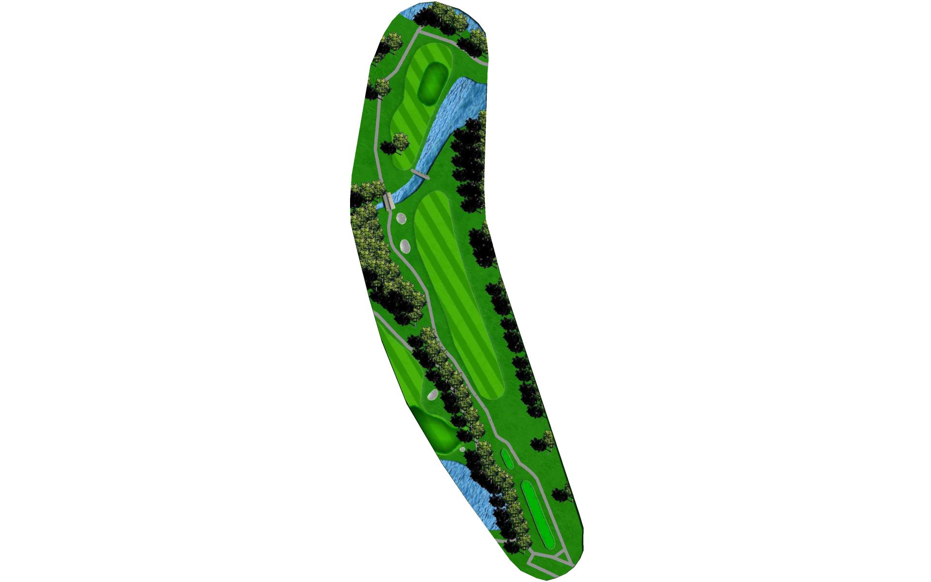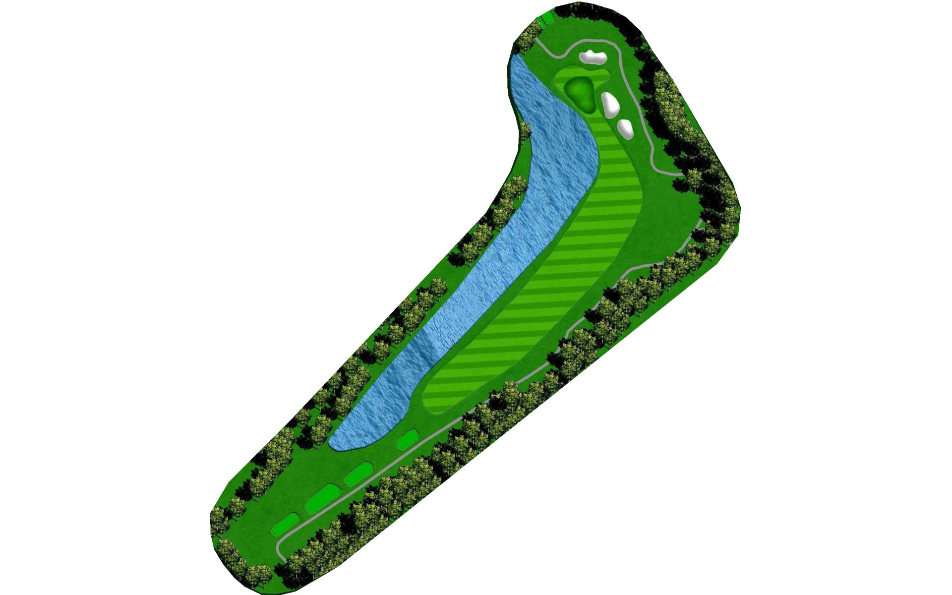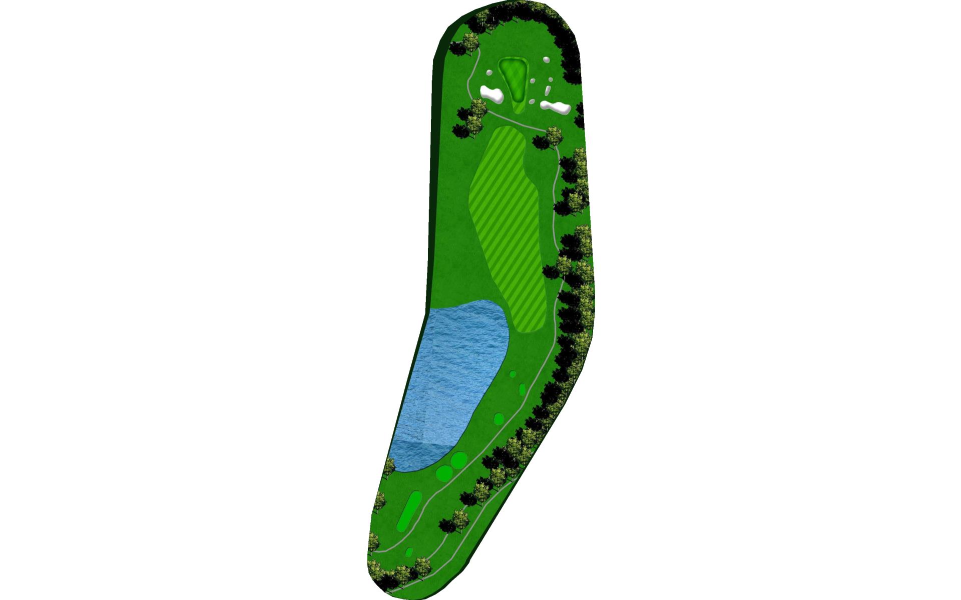 The shortest of the par 5s. This very reachable par 5 has many options but only one strategy: You have to go for the green. The tee shot is aimed at the lonesome tree on the left side of the fairway. From the left side, the green opens up to a long go-for-it approach. An errant shot by the green may be better than a lay-up approach shot from across the water, but why? Have fun with the three shot wherever it is.