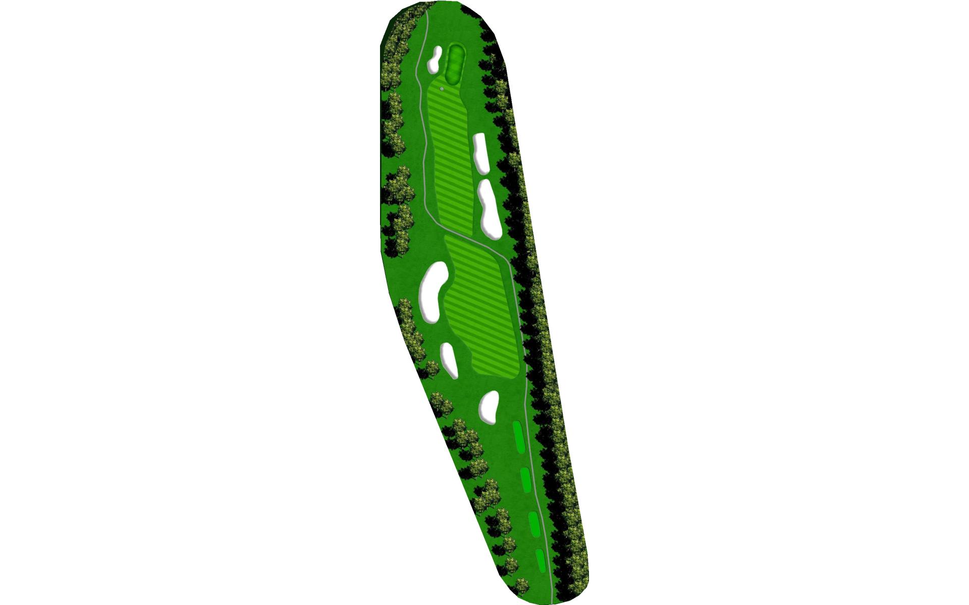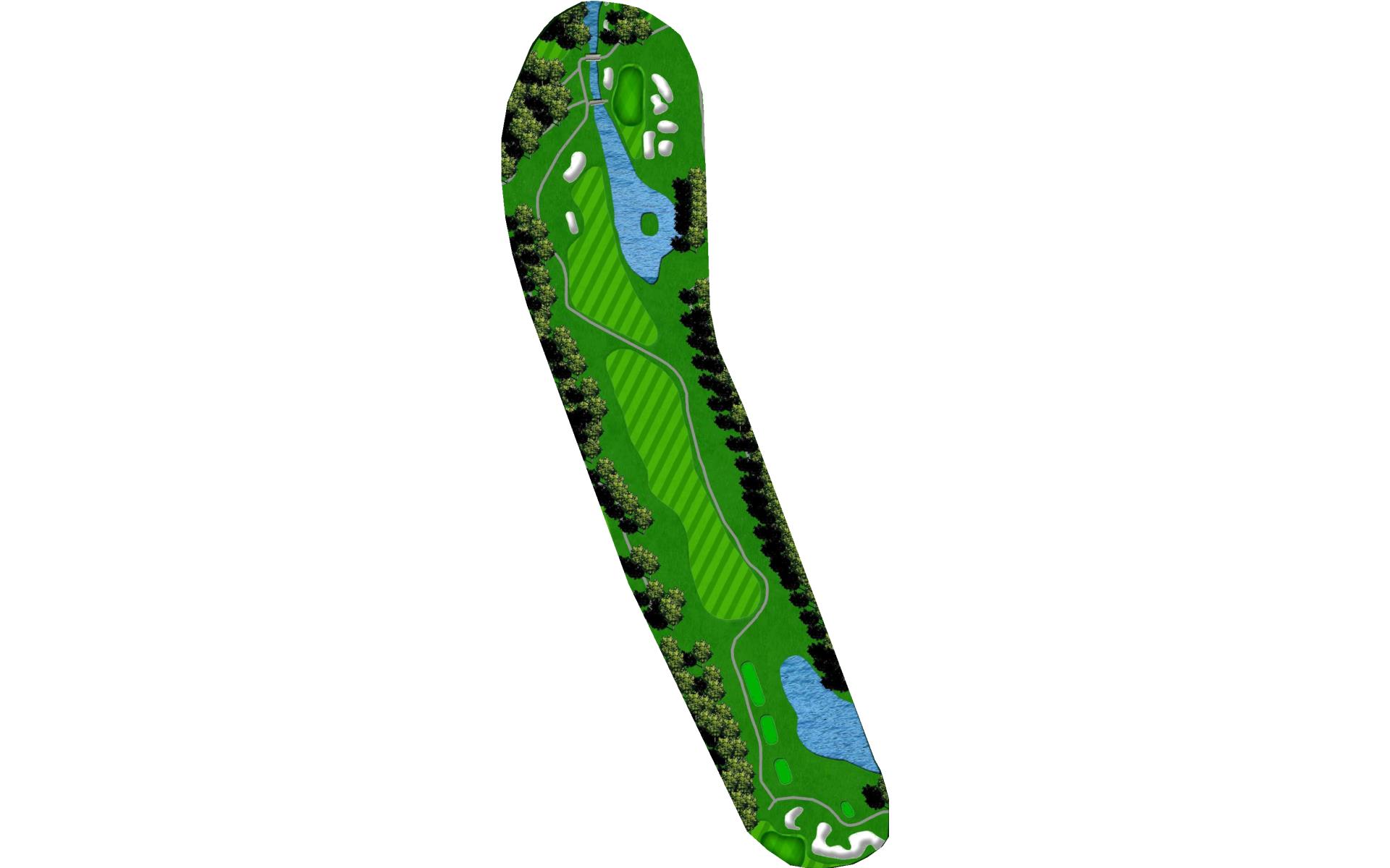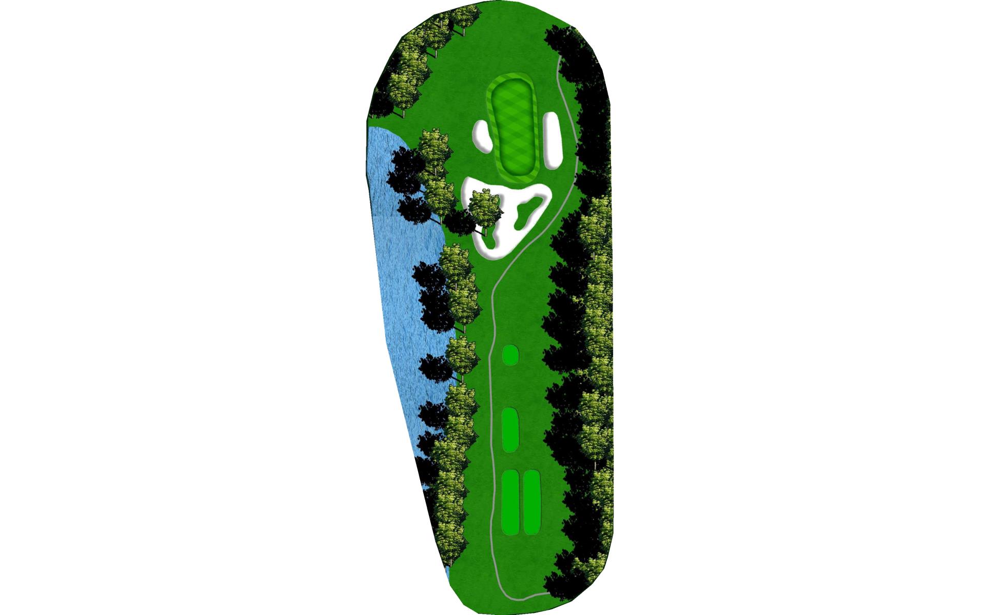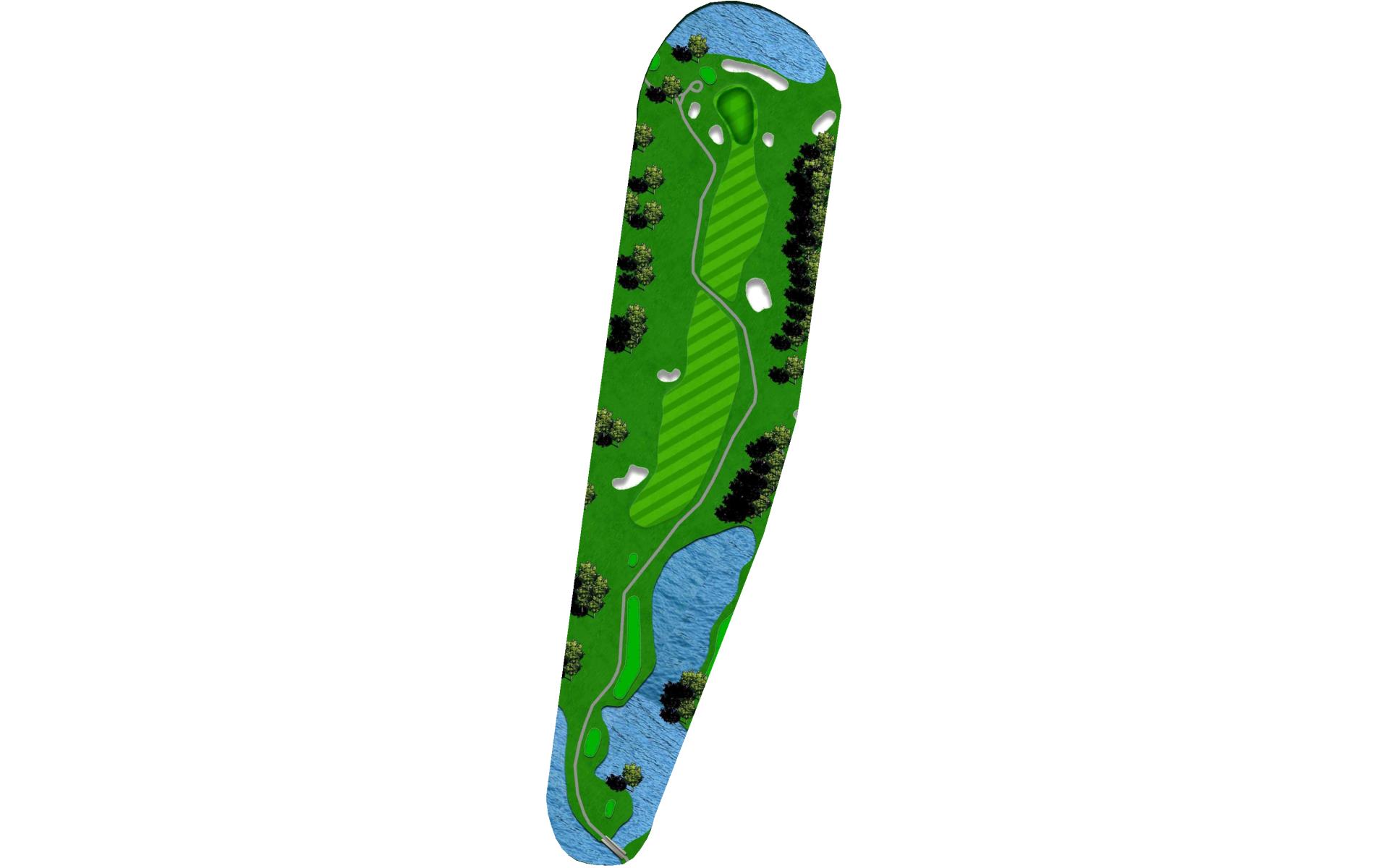 This extremely long par 4 has two hazards: length and water. Water is present on the right but it only amplifies the need for length on this bunkerless hole. With water and distance, this hole does not need anything else. Oh, but the woods around the green: nature's hazard.