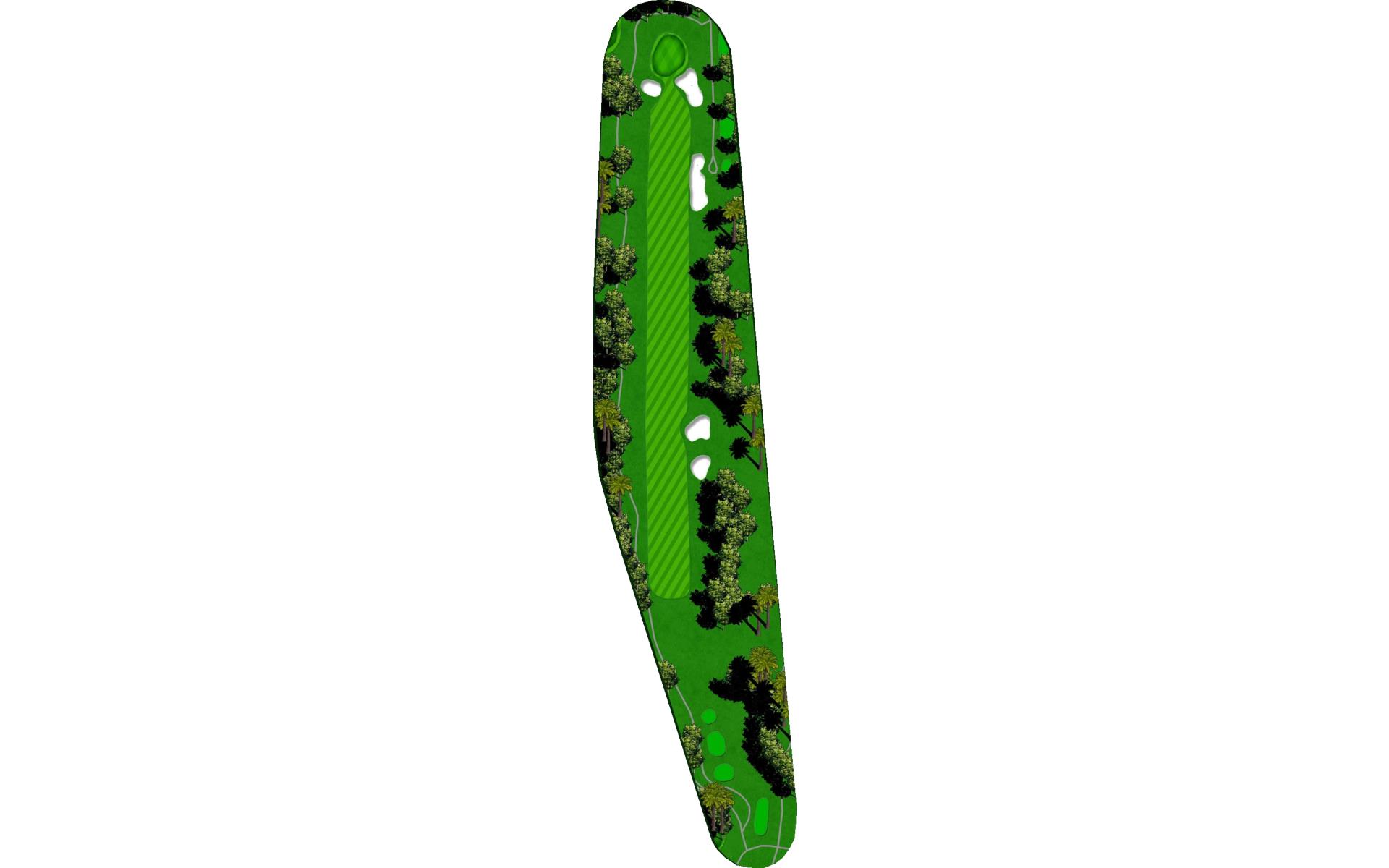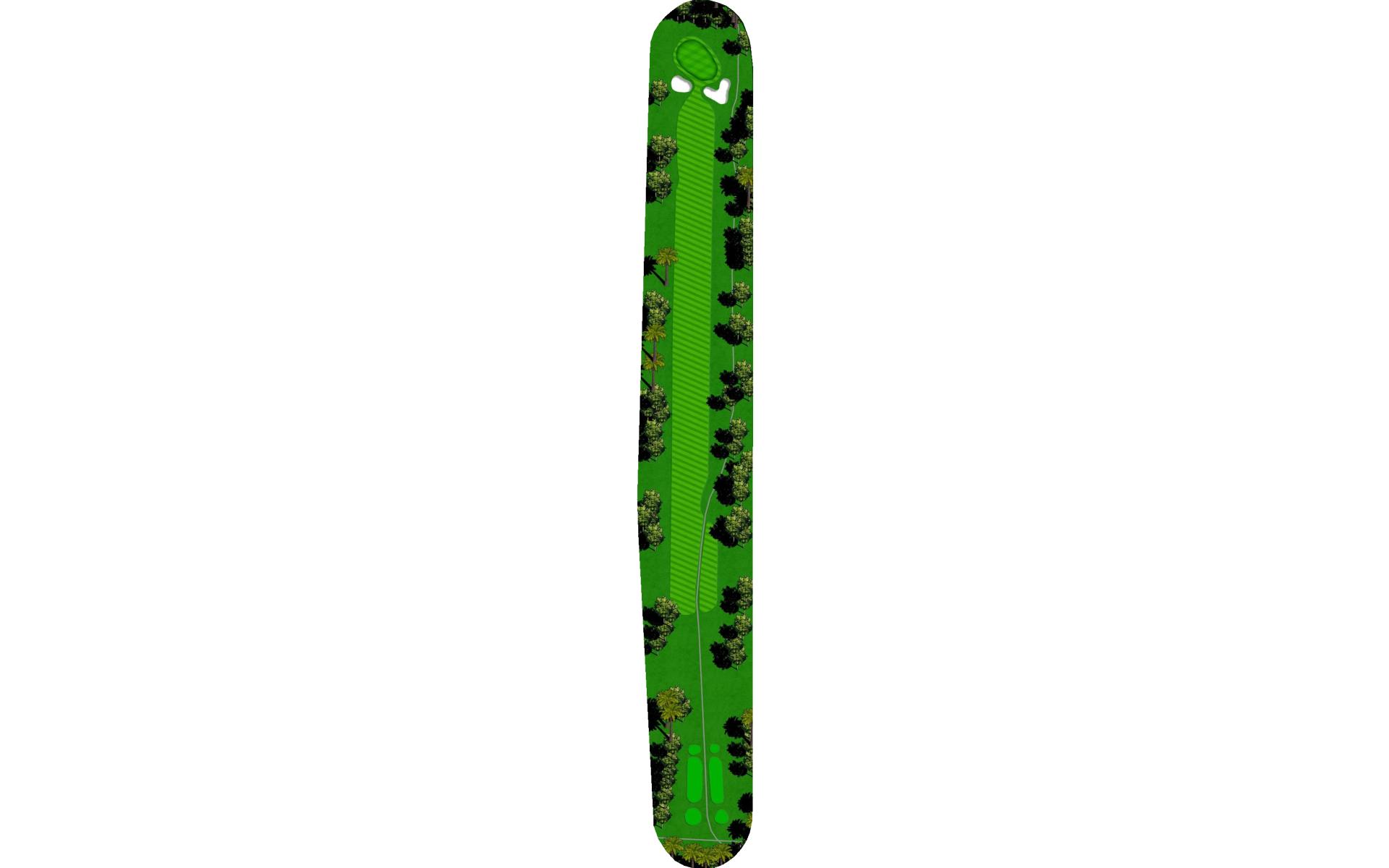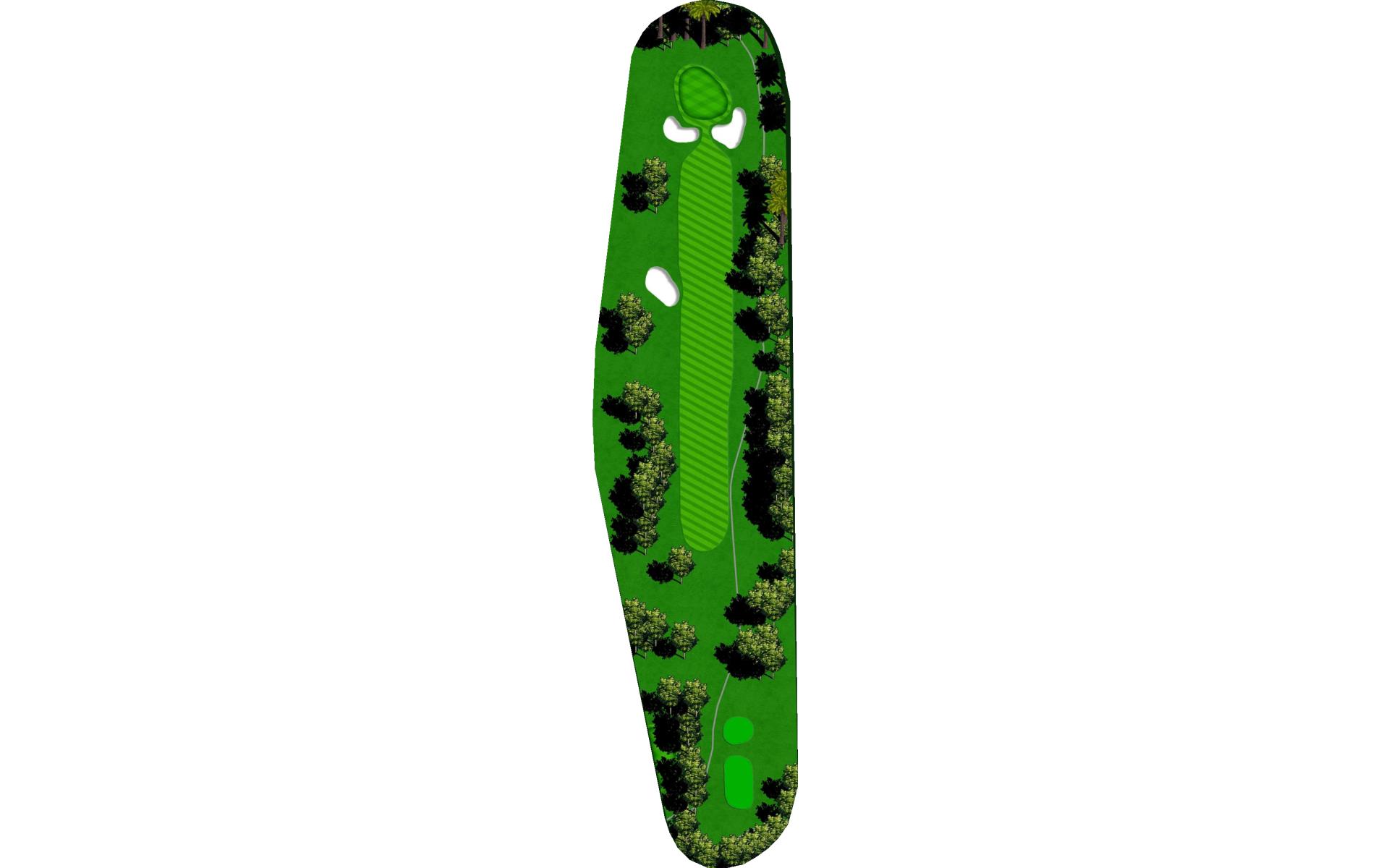 | Bunker off the tee is well placed and catches lots of tee shots. Once the bunker is navigated properly, players have a couple hundred yards of birdie opportunity with a fairly neutral putting surface. |