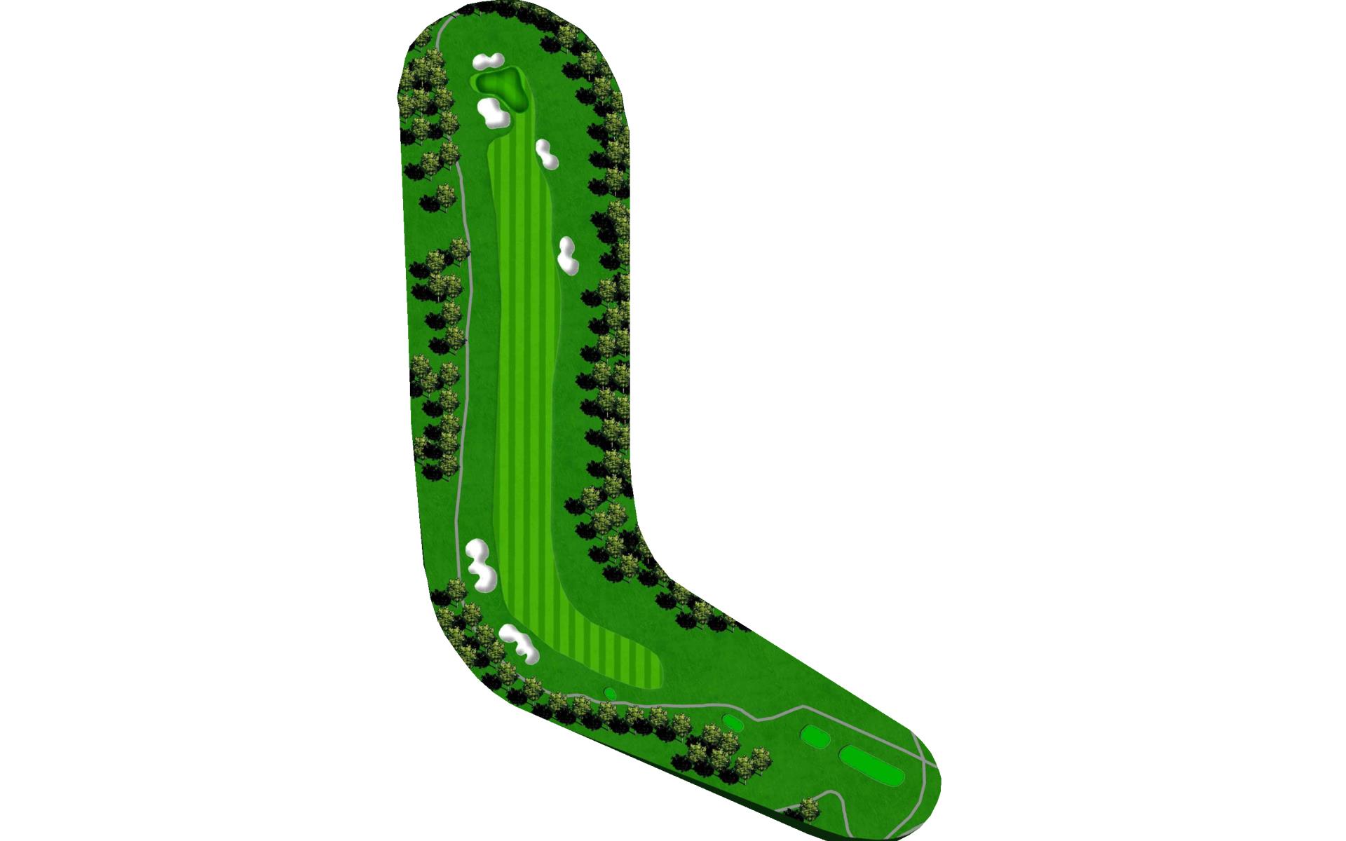 A dogleg right with fairway bunkers. Beware: hard right is out of bounds.