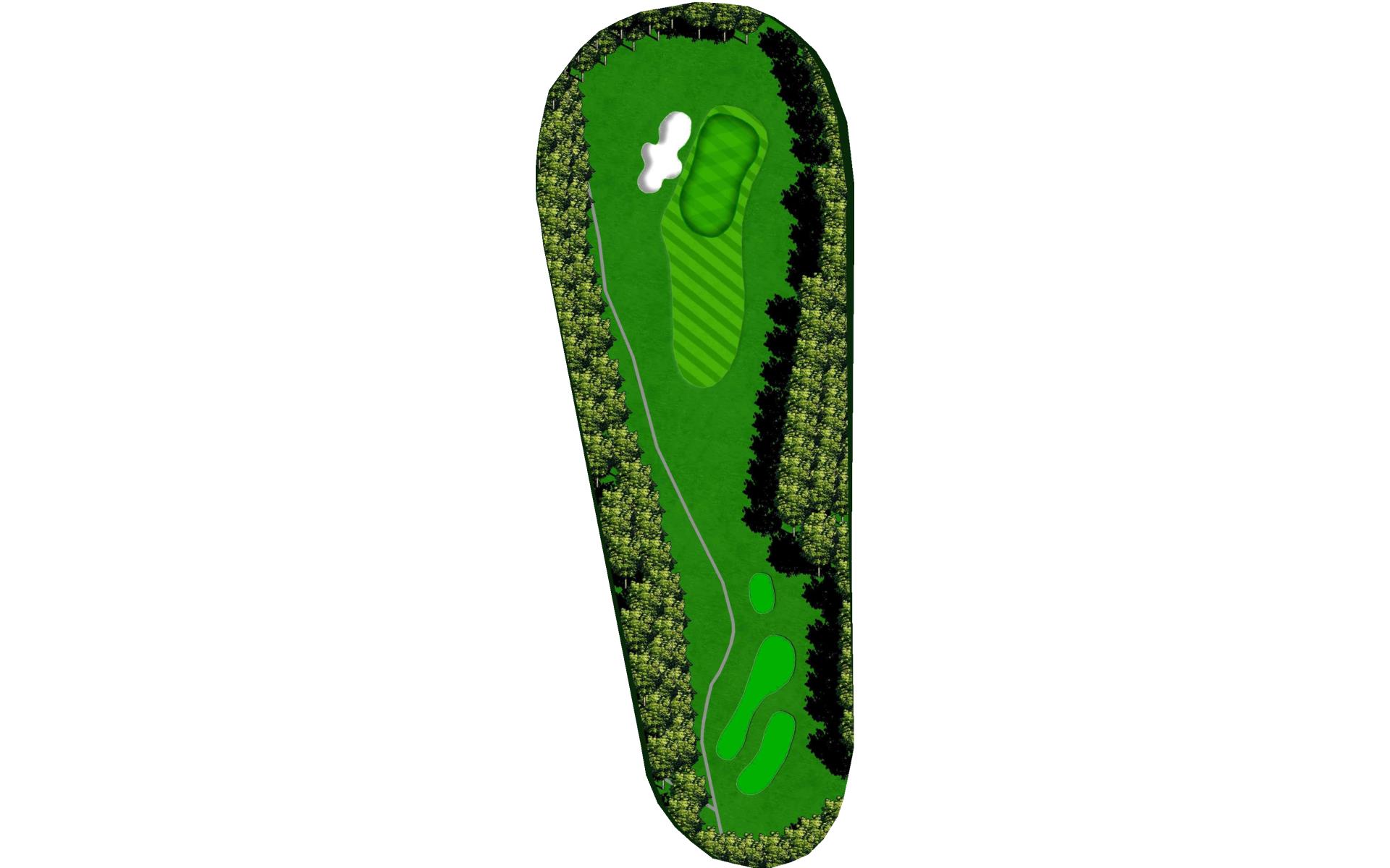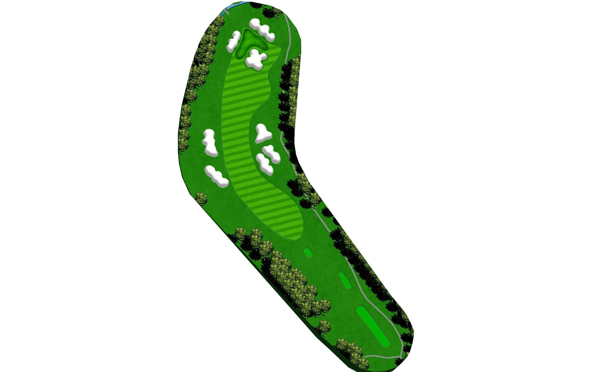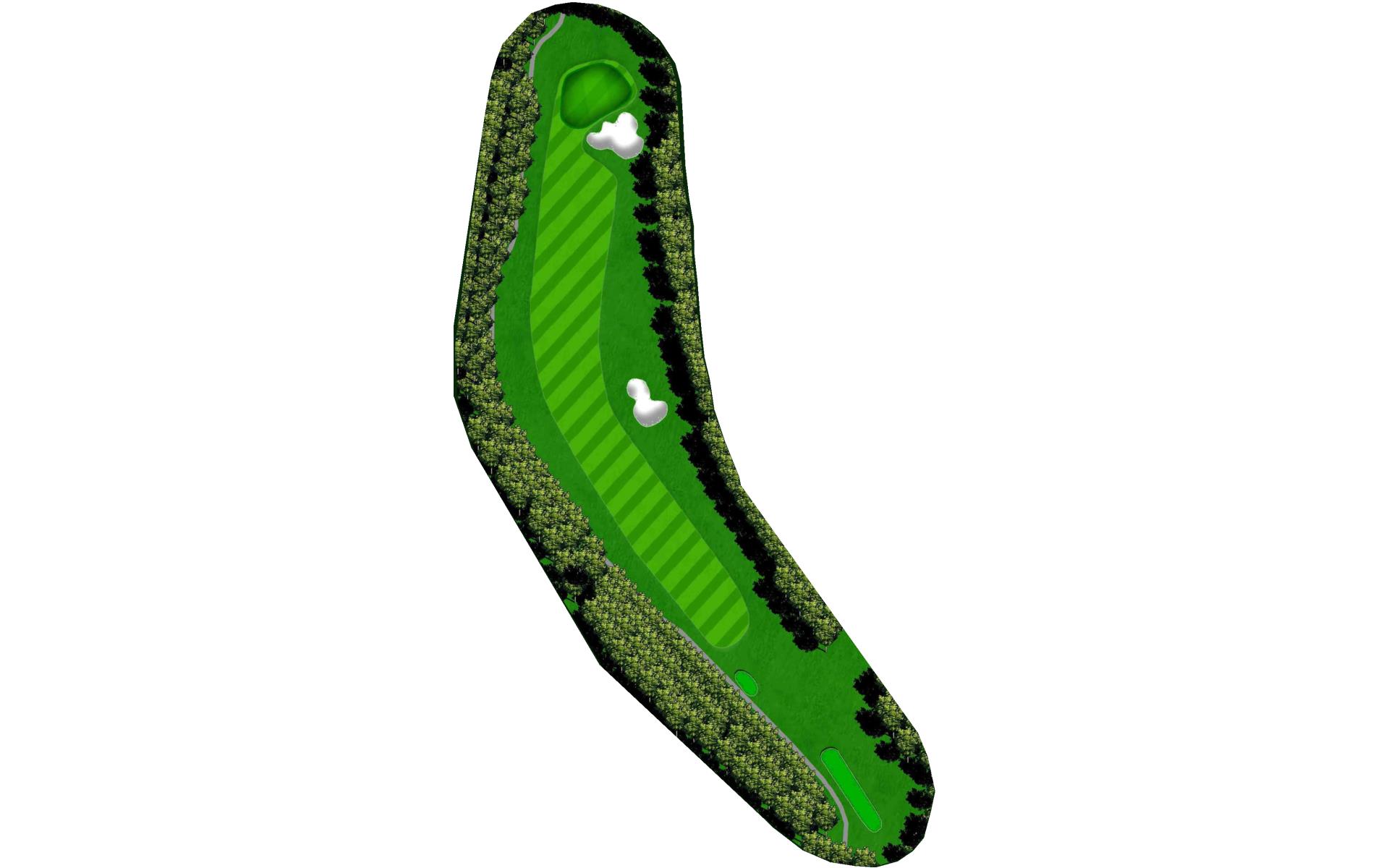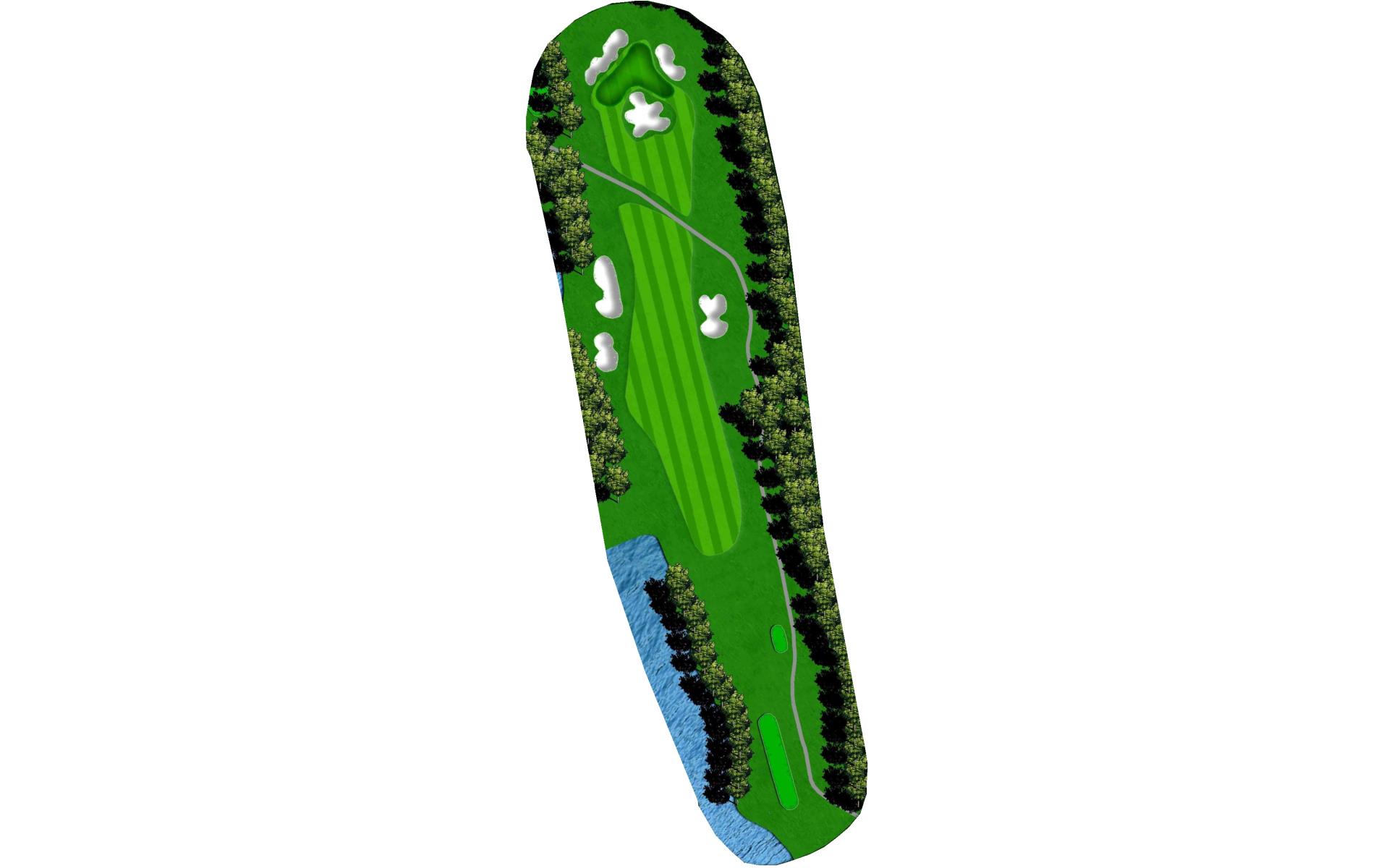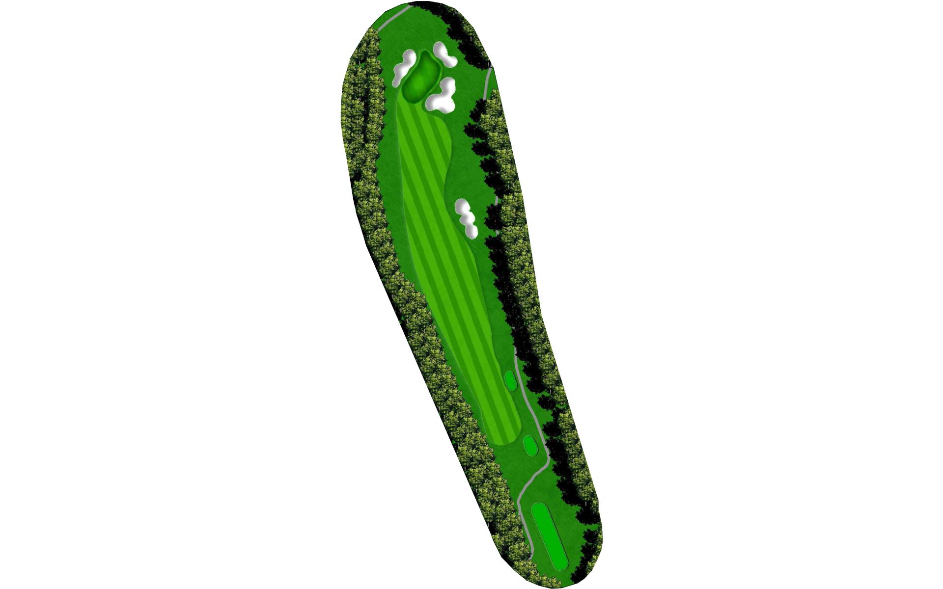 It’s all about the drive on this short par 4, with a green that’s protected by bunkers.It’s all about the drive on this short par 4, with a green that’s protected by bunkers.