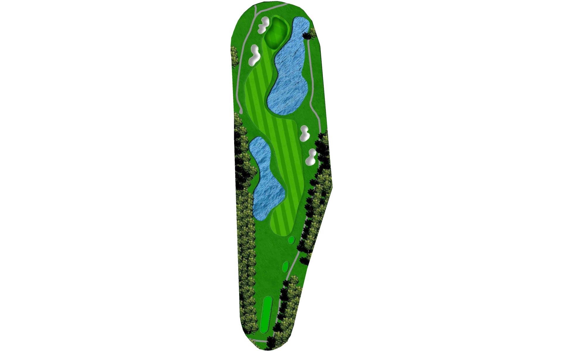Our signature hole and the real No. 1 handicap. With two lakes - one off the tee and the other on the approach - you’ll need to keep it out of the water.