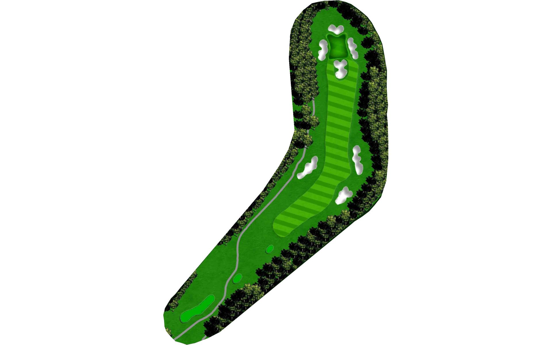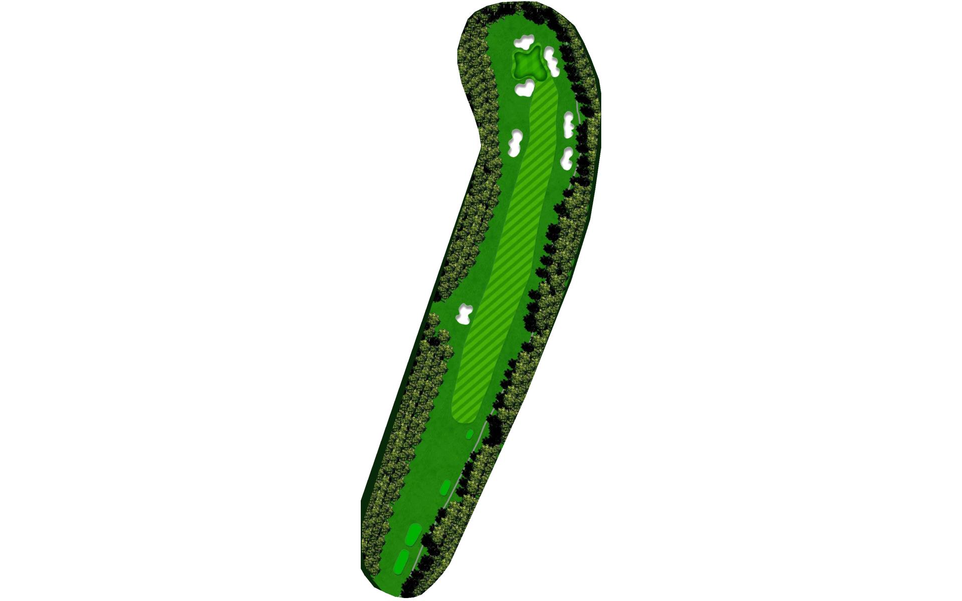 For this dogleg right hole, with a green protected by bunkers, it’s all about the approach.